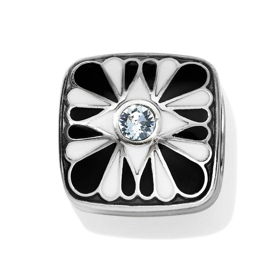 Hand-enameled details add shine to this black and white pillow-shaped bead inspired by a trip to Africa.