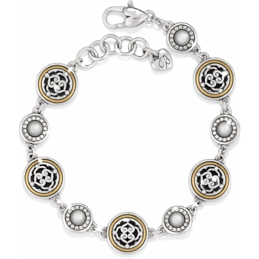New to the Intrigue collection, with petite features, this bracelet was inspired by the House of Faberge. This delicate bracelet features five tiny two-tone pierced medallions among round stations.